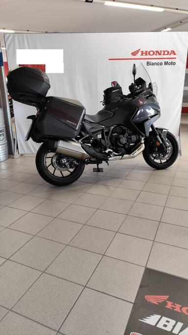 Mezzo accessoriato con: barre paramotore alte e basse Givi, estensione paramano, decalche protettive a serbatoio, estensione cavalletto laterale, piastra posteriore in alluminio Honda, telaietti per bauli laterali Givi.
