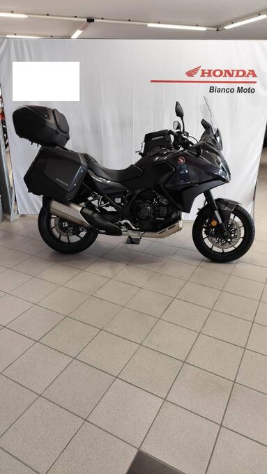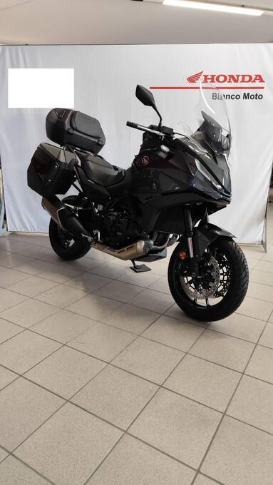 Mezzo accessoriato con: paramani, tamponi paracaduta, telaietti per valigie laterali Givi, supporto + piastra + baule posteriore Givi.