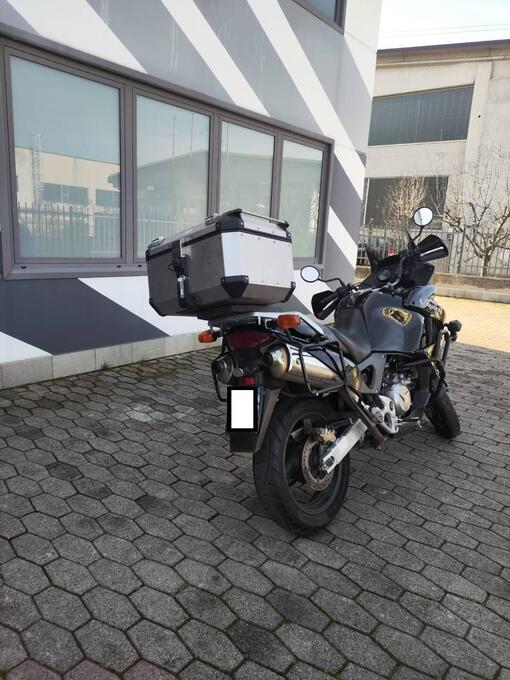 Mezzo accessoriato con: barre paramotore Givi, faretti Givi alogeni, telai per valigie laterali Givi, supporto + piastra Givi posteriore con bauletto in alluminio.